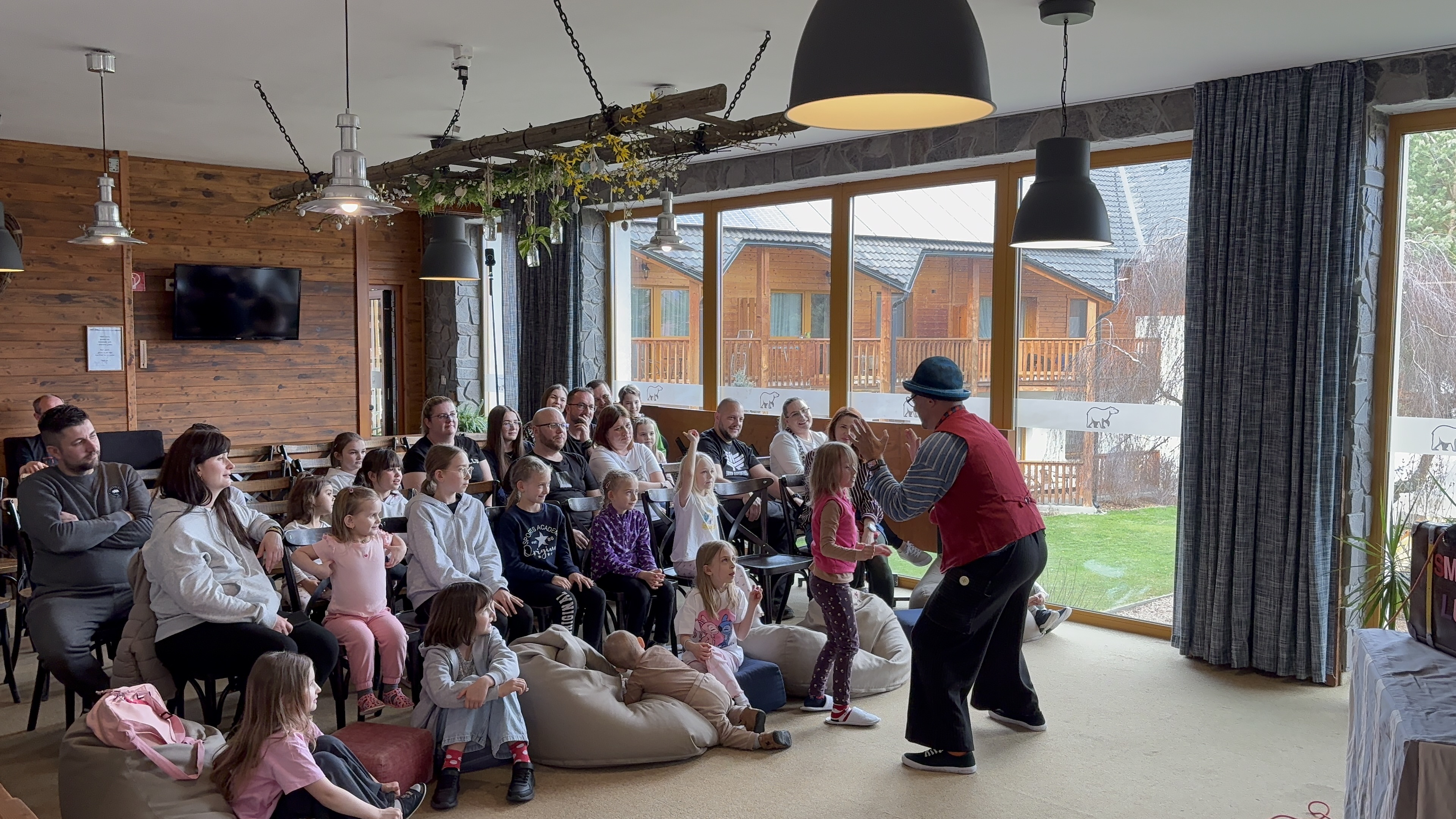 Sobotný deň patril umeniu a humoru. Pozvanie k nám prijal Teater Komika a musíme uznať, že to malo všetko čo by ste od divadla očakávali. Predstavenie bolo nesmierne vtipné a interaktívne – zabavili sa nielen deti, ale smiechom vybuchovali aj dospelí. Bolo príjemné sledovať, ako sa celé rodiny spoločne bavia na jednom mieste u nás v rezorte.